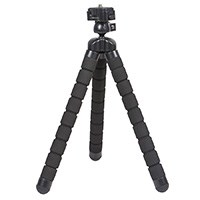 Get the angle just right with this Large Flexible Tripod from Monoprice! This lightweight flexible tripod can be mounted virtually anywhere. The ultra flexible legs allow you to wrap your camera around poles, fences, tree branches, or anywhere else you may need it, so you don't have to leave anything or anyone out of your pictures. The tripod's feet are made of rubber so that it won't slip from any surface it is resting on. The universal mount head has a 360 degree swivel range and can tilt in any direction. When the legs are pointed straight out, the tripod is 10.5" long. It weighs only 1.8 lbs and can support up to 3.4 lbs. |