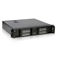 This 2U Compact Aluminum Rackmount Chassis is perfect for use as a server or as part of a cluster. It is constructed of aluminum and features one 5.25" and one 3.5" externally accessible drive bays, plus two internal 3.5" drive bays. The drive bays are hidden behind the left side vented door, which can be locked to prevent unauthorized access. Also hidden behind the left side door are two USB 2.0 ports, plus the power and reset switches. The front panel sports power and HDD activity LEDs, plus the locking mechanism to prevent unauthorized access. The case accommodates Micro ATX motherboards (up to 9.6" x 9.6") with up to four low-profile expansion slots and is compatible with ATX PS3 power supplies. It includes accommodation for up to two 60mm cooling fans (not included). The air filters can be removed and washed. Features: