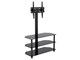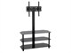 Get the elevated viewing angle of a wall mount bracket without having to drill holes in your wall using this High Quality TV Stand with Mount from Monoprice! This TV stand features a vertical riser with a VESA TV mount that can accommodate displays up to 47" in size and total weight up to 88 lbs (40 Kg). The stand measures about 35.4" x 15.8" x 19.8" (LWH) and the riser extends upward to about 55.1". The total assembly weighs about 48.3 lbs. The top shelf can accommodate the full 88 lb (40 Kg) weight capacity of the stand. The middle and bottom shelves can support up to 22 lbs (10 Kg) each, so long as the total does not exceed 88 lbs. The bottom shelf sits about 2.4" above the floor.