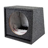 Build your own subwoofer(s) for your car, boat, or RV using your choice of high quality driver and this premium 12-inch Subwoofer Enclosure from Monoprice! This enclosure is made of 12mm thick MDF. The outside is covered completely in gray carpet, while the inside features sound damping cotton/polyester fiber on each surface. It measures 15.4" tall and 15.7" wide. It is 16.5" deep at the base, 11.0" deep at the top, and the back has 70 degree angle. The internal capacity (volume) is 2380 cu in (39 liters) and the assembly weighs 24.8 lbs (11.23 Kg). It is pre-wired with 15.7" long 14AWG speaker wire on the inside and bare wire binding posts on the outside, which can accept speaker wire from 6-18AWG. The precut speaker hole accommodates standard, round 12" drivers. It has predrilled starter holes for the screws and includes 8 mounting screws in the package. This enclosure is front ported. Speaker not included! |