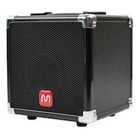 This portable speaker system is designed to serve as both a music source and a PA system. It features an 4" full-range driver with a frequency response of 85 Hz ~ 18 kHz. It is powered by a built in amplifier than can produce up to 10 watts of power.
