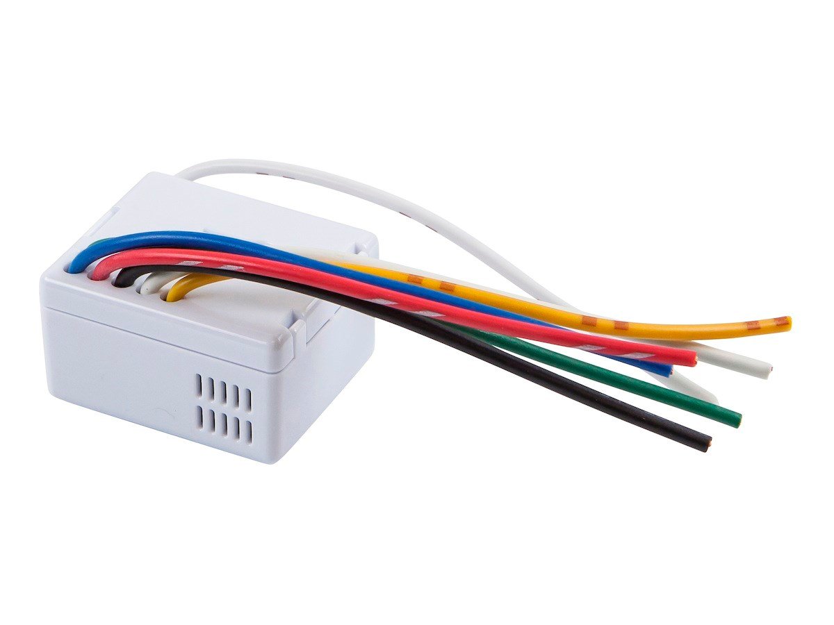 Control up to two lights and/or appliances using this Z-Wave® In-Wall On/Off Dual Relay Module from Monoprice! Z-Wave is an interoperable, two-way RF mesh networking technology used for home automation and security. AC-powered Z-Wave devices, such as this module, act as signal repeaters for the Z-Wave network, so multiple devices result in more possible transmission routes, which helps eliminate RF "dead spots" in the network. Any Z-Wave enabled device displaying the Z-Wave logo can be used with Z-Wave devices from other manufacturers. This module allows you to turn one or two appliances on or off wirelessly, using the Z-Wave controller or as programmed responses to triggered events. It is small enough to fit in an electrical box and can handle loads of up to 550 watts at 110 VAC (1100 watts at 220 VAC). It is designed to be installed into a system with two on/off switches and two loads. This module supports FLiRS. Support Files: