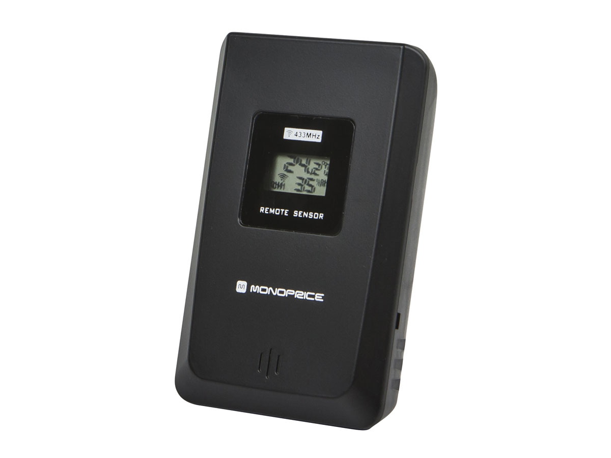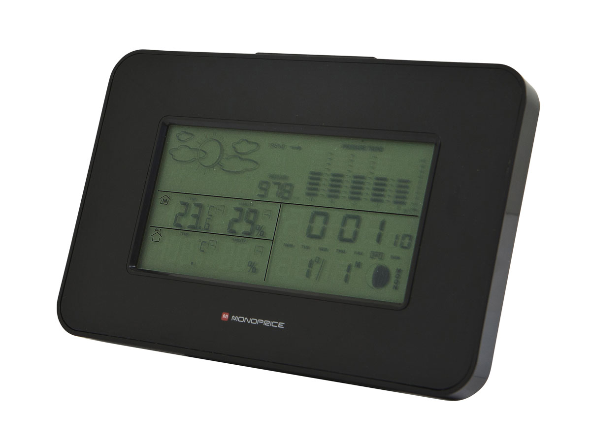 Track temperature, humidity, and barometric pressure using this Wireless Multi-zone Weather Station/Alarm Clock from Monoprice! This weather station features built-in temperature, humidity, and barometric pressure sensors, as well as a remote temperature/humidity sensor so you can see both the indoor and outdoor environmental conditions. Although only a single remote sensor is included, the weather station can pair with up to three remote sensor for displaying the temperature/humidity readings from different locations. The remote sensor has a clear air range of about 98 feet (30 meters). The weather station tracks and displays changes in barometric pressure and uses the trends to forecast expected weather conditions. It also tracks the minimum and maximum temperature and humidity readings, which you can view by pressing one of the function buttons. It includes two individual alarms and a five minute snooze function. The weather station/alarm clock requires 3x AA batteries. The remote sensor requires 2x AAA batteries. Batteries are NOT included. Features: