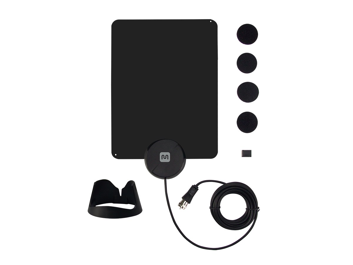 This is the TV Antenna your cable company doesn't want you to know about. Never pay for cable or satellite again with our Monoprice's 0.2" Paper Thin HDTV Antennas! This Small Paper Thin HDTV Antenna measures 6.7" x 6.7" and has a range of up to 25 miles, allowing you to receive local ATSC channels in Full HD. All this without any power requirements, making it quick and easy to get everything up and running, without any limitations to your preferred mounting location for the best reception possible. Equipped with everything you need, the paper thin design allows you to easily place it in different positions and locations. With such flexibility you can stick it to a window or wall, or even under a kitchen cabinet, using the included hook & loop patches or place it on table using the included base/stand. The number of channels you receive is determined by how far you are from the transmission towers, as well as your surrounding environment. |