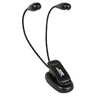 Light up your sheet music, piano keys, and more with this Dual-Arm Flexible LED Music Light from Monoprice! The music light features dual LEDs on each lamp with two levels of brightness for your individual needs. The lamps are set on their own 7.5" flexible gooseneck for ultimate adjustment and precision when needing to light specific areas. Great for when you're sharing your piano bench! The lights are attached to a base that can also be clipped onto something such a music stand. It can operate on 3x AAA batteries or plugged in using the included 40" USB power cable. Features: