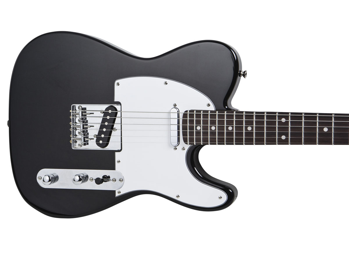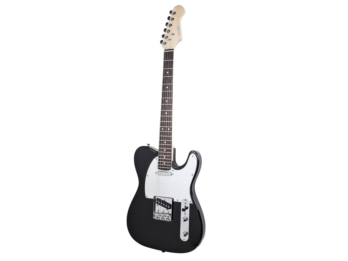 With the versatility to play classic country, rock, blues, and jazz tones, you can make this Retro Vision Solid Body Electric Guitar the workhorse of your collection! This full-sized, 22-fret, single cutaway electric guitar features two single-coil pickups and is capable of producing a wide range of tones. With the bridge pickup, you can get that bright, rich, cutting tone known as the country "twang" made famous by artists such as Merle Haggard and Waylon Jennings. With the neck pickup you get a warmer, mellow, bluesy tone, such as that of Albert Collins or Muddy Waters. Additionally, rock musicians as diverse as Syd Barrett, Chrissy Hynde, and Keith Richards have found a way to make their own distinctive sound using this style of guitar. The guitar is constructed with a basswood body, bolt-on maple neck, and rosewood fretboard. It features locking tuners and is strung using Monoprice's coated-steel strings (light, 0.010"). The chrome volume and tone knobs are accompanied by a three-position switch, which lets you select the neck or bridge pickup, or both. Before it gets shipped to you, each Monoprice guitar undergoes a setup, tuning, and inspection process by Master Luthier Roger Gresco here in Southern California. The setup ensures that the neck is straight, the action is right, and that it will stay in tune. Additionally, it comes with everything you need to get started, including strings (installed), a heavy-duty zippered black gig bag with shoulder strap, and a truss-rod wrench.