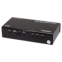 Are you stuck with an older HDTV without enough HDMI® ports for all your equipment? Don't go through the hassle of swapping cables and don't go to the expense of replacing a perfectly good TV. Get the Monoprice 3x1 HDMI Switcher instead! This mini switch box allows you to connect three HDMI sources and direct them into a single HDMI output. The switcher supports 1080p resolution with 3D and high-resolution audio, including Dolby TrueHD™, Dolby® Digital Plus, and DTS-HD Master Audio™. It also supports 30-bit and 36-bit deep color modes. Note that this switch has "normal" HDMI Connectors. The "mini" in the title and description refer to the size of the switch, not the type of connectors it uses. The switcher includes a wireless remote control to easily switch between sources without having to leave the comfort of your couch, and if you misplace the remote all is not lost! It also has a source selection button on the front, so it can be operated without the remote. Smart circuitry built into the unit allows it to skip over inputs that are unused or whose equipment is turned off so you can instantly switch between the devices you have operating. The unit supports 3D feature and conforms to the HDCP, ensuring that all of your equipment and media will play properly. Note: The remote control is the same one used for the 5x1 Switch Box and thus includes 5 direct access buttons. Buttons 4 and 5 will have no effect with this switch. Use buttons 1, 2, and 3 to directly access an operating source device. Use the left and right arrow buttons to cycle backwards and forwards through the operating source devices. Features: