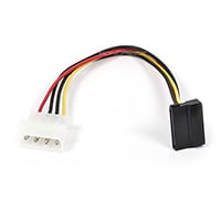 This 8" adapter cable plugs into a 4-pin Molex power plug and provides a single 15-pin SATA 90-degree power connector.
