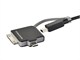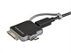 This power/sync cable is about 6 feet long. One end has a standard USB A male plug, while the other end has a USB mini-B male connector. Tethered to the cable is a simple 2-way adapter, which allows you to adapt the mini-B connection to either a male micro-B or Apple dock connector plug. The tether is made of durable, pliant plastic and can be removed if desired.