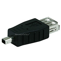 For connecting onto a type A male end of a USB cable to convert it to a male mini B 5 pin connector. The adapter has a female Type A on one side and a male Mini B 5 pin on the other. Please Note: USB devices generally consist of host devices such as computers w...